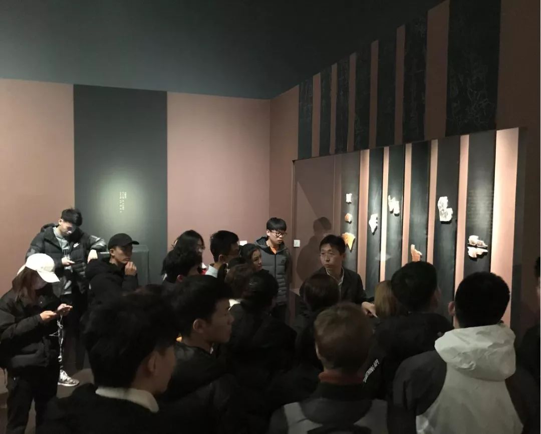首先,在讲解员的带领下进入了“契文重光”部分的展出。在该部分的展览中,大家观看了“殷墟127号坑甲骨堆模型”“埃及文石碑”“卜骨”等一系列重要文物,重温了甲骨文发现、破译的历史等基本知识,深刻体会到了古代中华文字在世界文明史上的地位。在此过程中,体会到殷墟甲骨文的重大发现在中华文明乃至人类文明发展史上具有划时代的意义。甲骨文是迄今为止中国发现的年代最早的成熟文字系统,是汉字的源头和中华优秀传统文化的根脉。讲解过程当中,讲解员不仅引经据典,还结合时事和自身的感受来拓宽我们的视野,让很多同学都感觉受益匪浅,也提高了同学们对甲骨文的认识。
