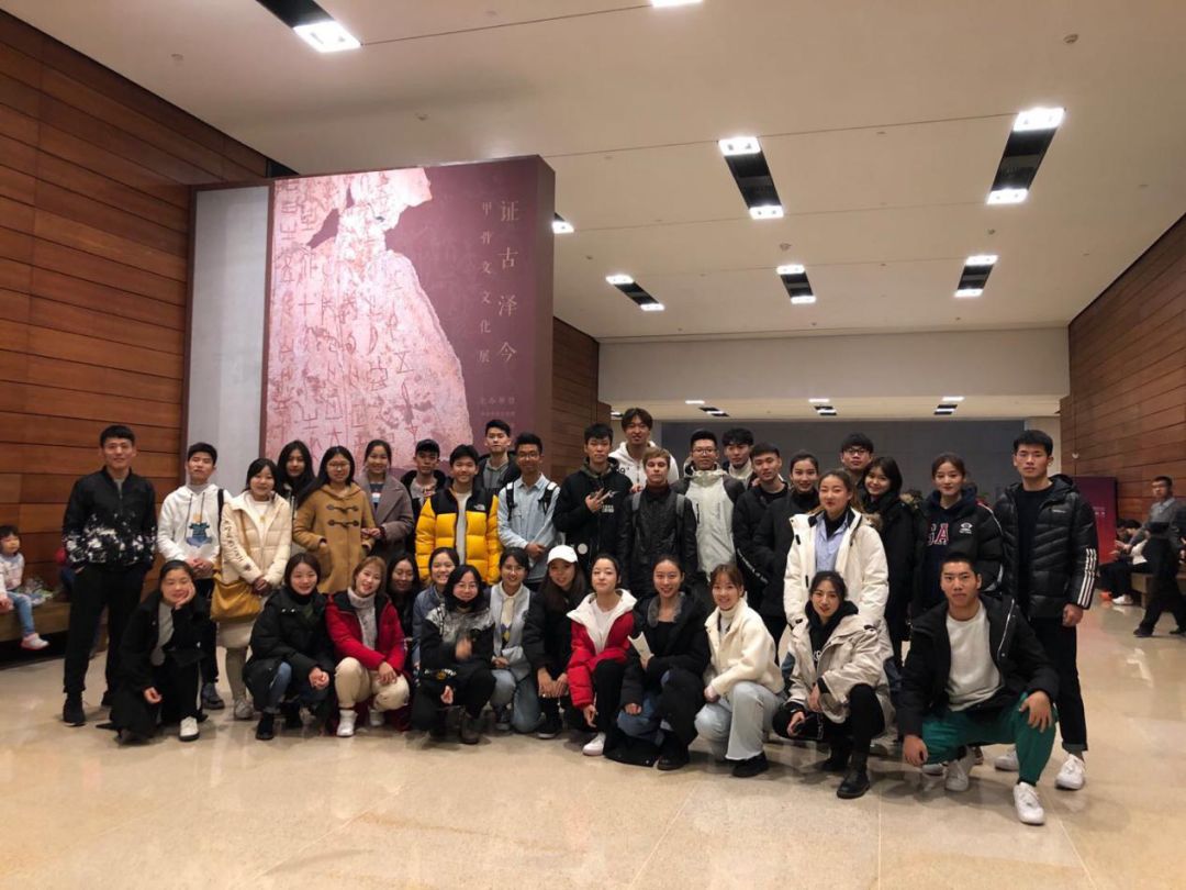 为了让同学们近距离感受甲骨文化的魅力,增强对语言文字学习的兴趣,2019年11月13日上午8点,北京体育大学通识课《语言与生活》的部分学生,在乔东鑫、王辰两位老师的带领下,共同前往国家博物馆,参观纪念甲骨文发现和研究120周年特别展览“证古泽今”。本次活动还特邀了人文学院青年书法家衣雪峰老师一同前往。