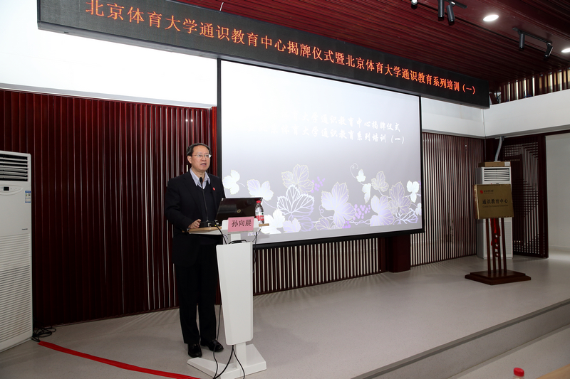 2019年3月18日,北京体育大学通识教育中心成立揭牌仪式暨北京体育大学通识教育系列培训首场讲座在奥林匹克讲堂举行。北京体育大学副校长高峰、复旦大学通识教育中心主任孙向晨及学校各学院负责同志和相关任课教师参加了中心成立揭牌仪式。仪式由教务处处长章潮晖主持。